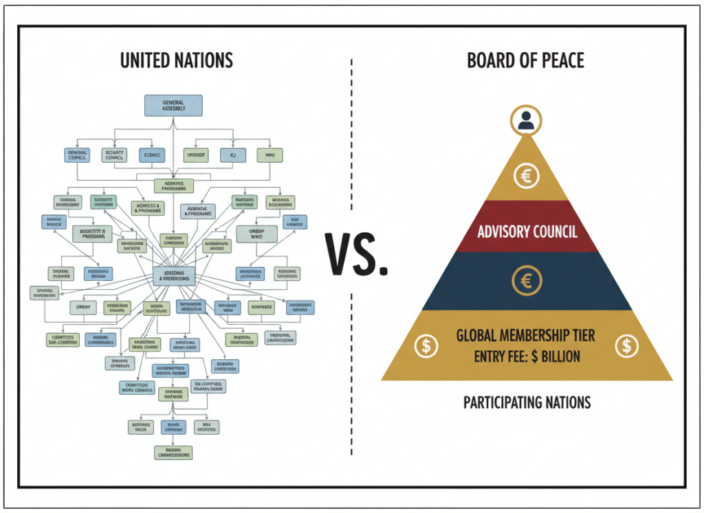 The most distinct feature of the Board of Peace—and the source of intense academic criticism—is its governance structure. Unlike the egalitarian “one state, one vote” principle of the UN General Assembly, or the permanent-member veto system of the Security Council, the Board operates on a model that critics describe as “corporate sovereignty.”