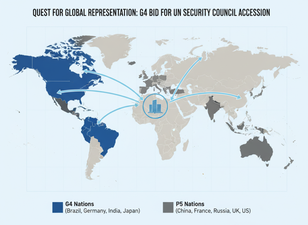 In January 2026, the G4 nations renewed their vigorous push for text-based negotiations, warning that further delay risks the credibility of the entire multilateral system. This article provides an analytical deep dive into the G4 proposal, its strategic rationale, and the formidable obstacles it faces from rival coalitions like Uniting for Consensus.